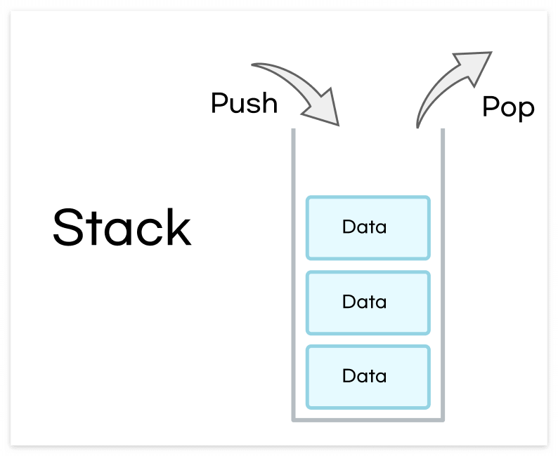 * Stack은 데이터 구조의 하나로 가장 최근에 추가된 항목이 가장 먼저 처리됨을 의미 (LIFO, Last In First Out)