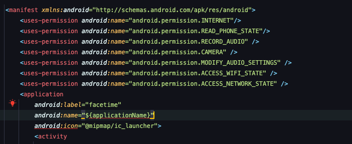 android/app/src/main/AndroidManifest.xml 경로에 agora_rtc_engine 권한 코드 추가