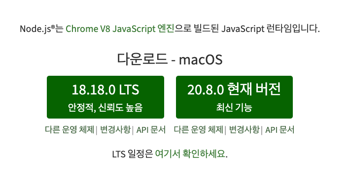 Node.js 공식 홈페이지 https://nodejs.org/ko